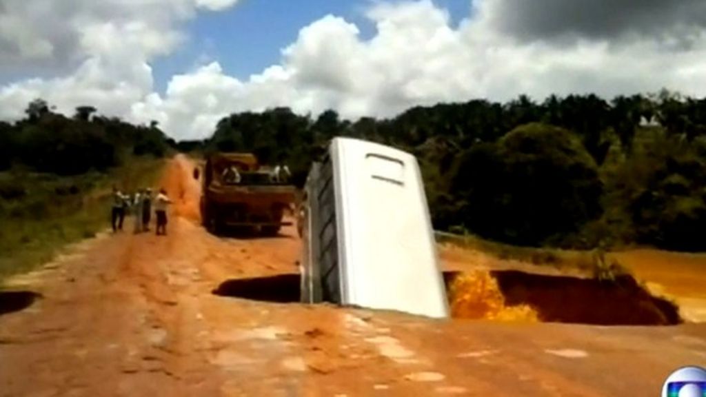 A bus has been carried away by flood waters after it fell into a river in Brazil.