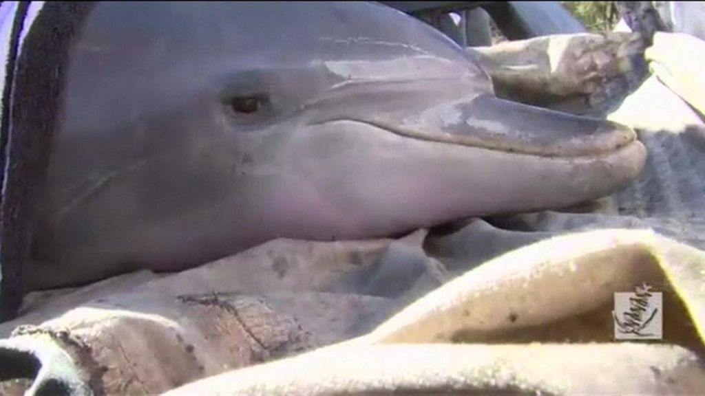 Bottlenose dolphins in river rescue