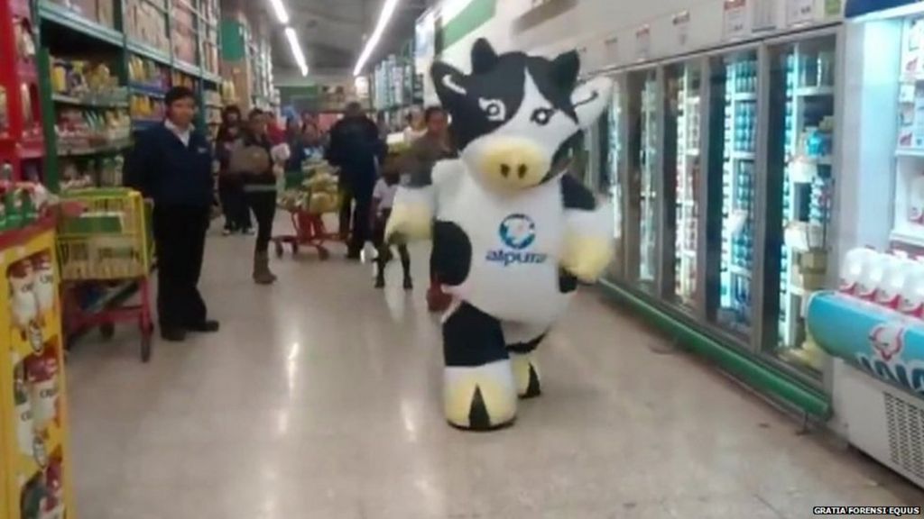 Shoppers at a supermarket in Mexico, got a bit more than they bargained for in the milk aisle.