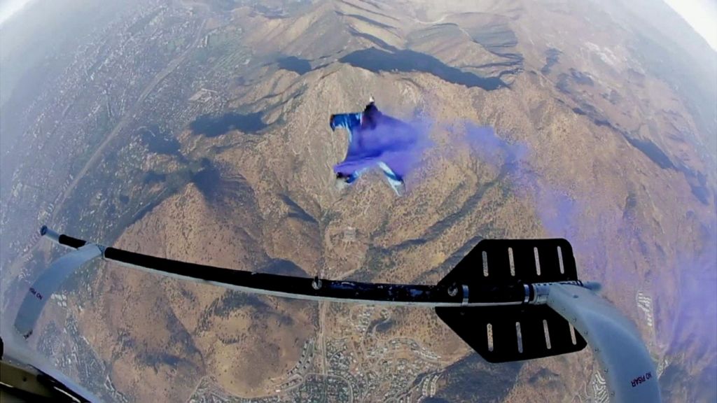 The stuntman showed off his fantastic flying skills over the mountains of Chile, in South America.