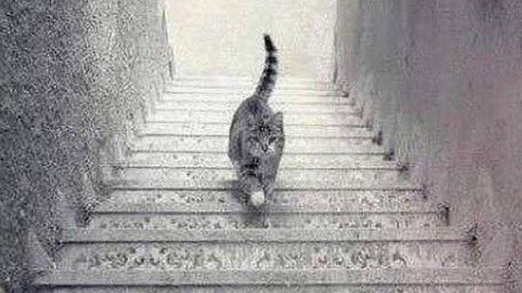 This optical illusion picture of a cat has had lots of people online, asking: is the cat moving up, or down the stairs?