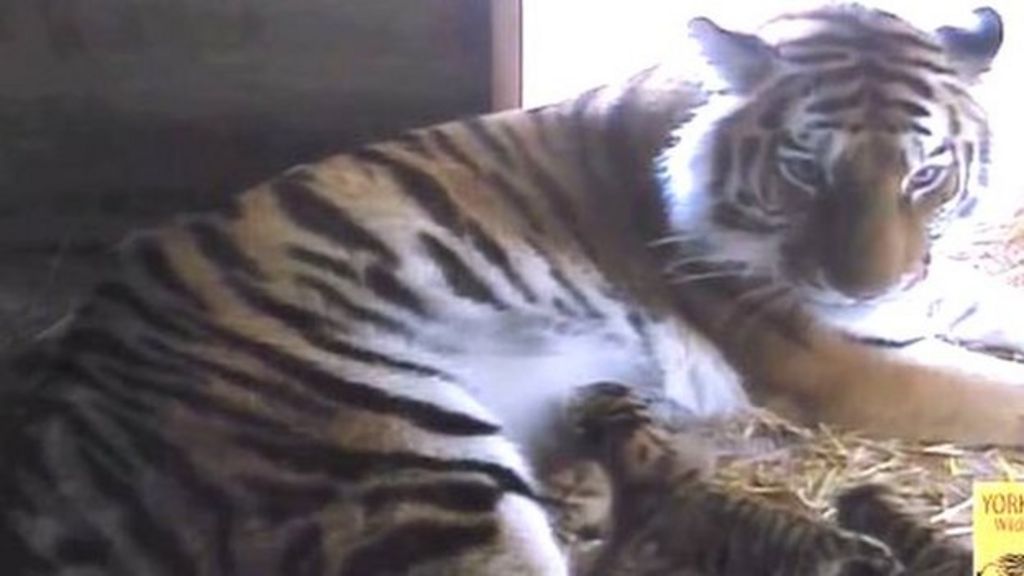 Four-year-old Tschuna had three cubs on 29 March at the Yorkshire Wildlife Park.
