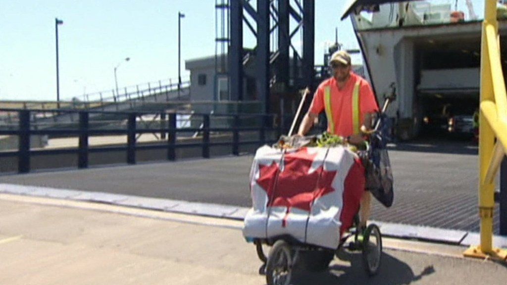 Andy Sward is now walking five thousand miles across Vancouver Island to St. Johns and has collected 31 thousand bottles and cans so far.