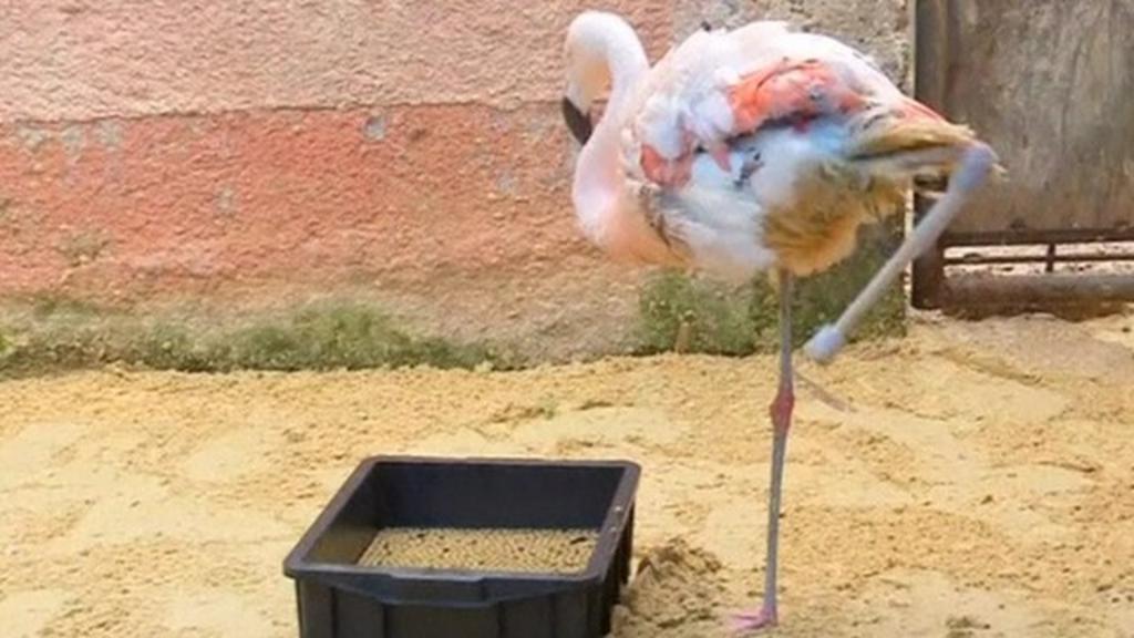 A flamingo at a Brazilian zoo has been fitted with a prosthetic leg.