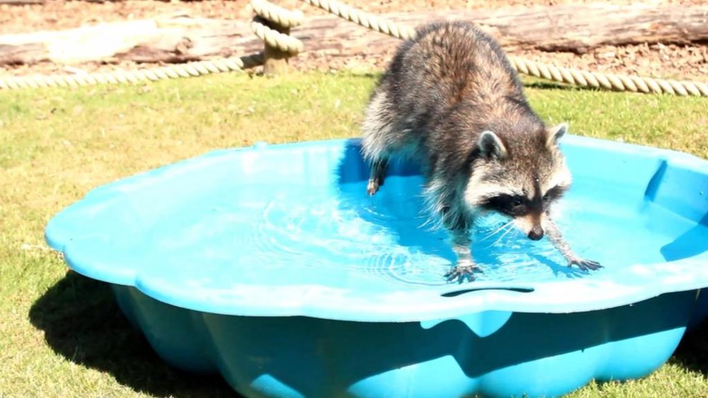 Dakota the racoon has found a fun way to stay cool - she took a dip in her own paddling pool.