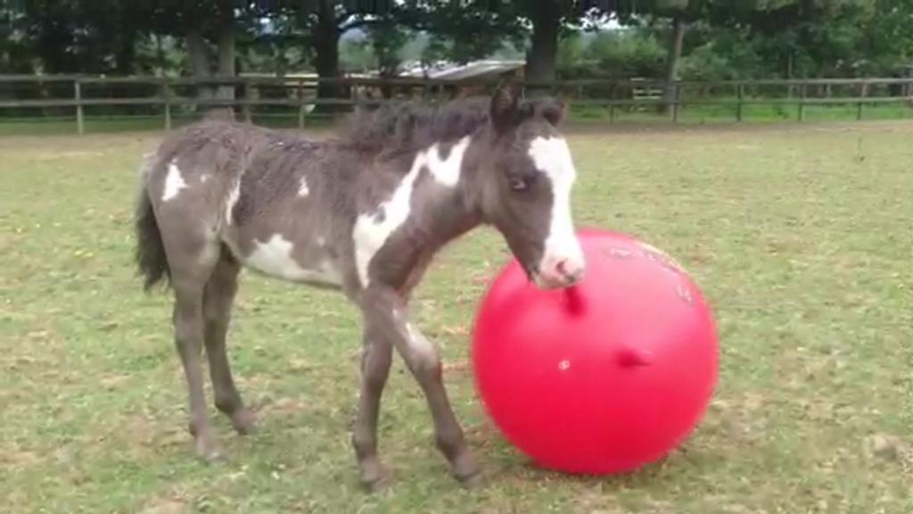 Born in Kent, in the south-east of England, the American miniature stallion is half the size of a regular foal of the same breed.