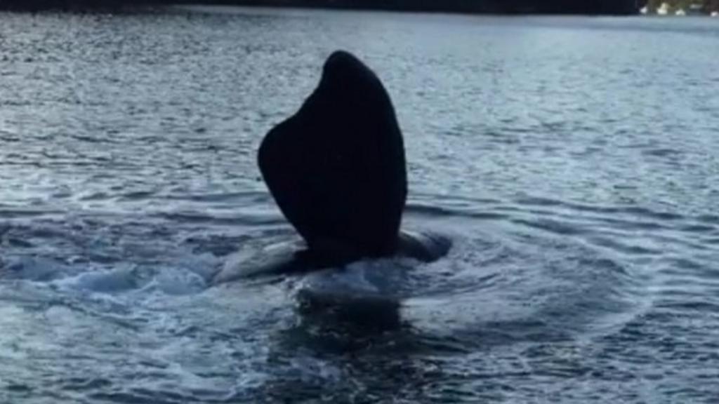 It soon became clear that the whale had a fishing line and two plastic bags caught on its head.