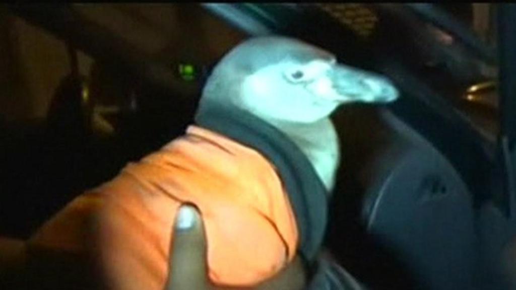 A penguin has been picked up by police after being found wandering the streets of a town in Peru, South America.