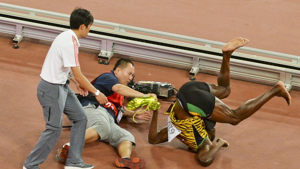 Sprinting legend Usain Bolt took a bit of a tumble at the World Athletics Championships in Beijing.