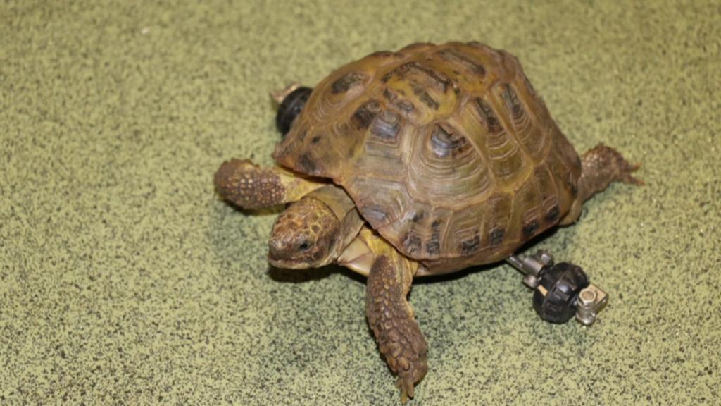 Harry the Tortoise is a very happy reptilian - why? Well, he's just been fitted with a new set of wheels!