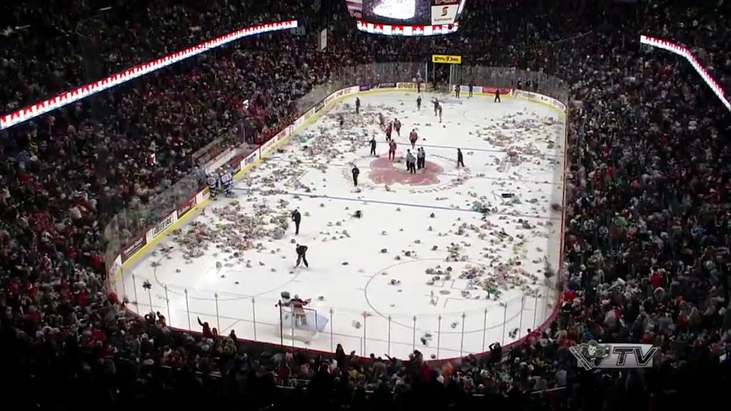 The annual Teddy Bear Toss has got bigger each year, and it's not just for fun - after the game all the toys get donated to charity.