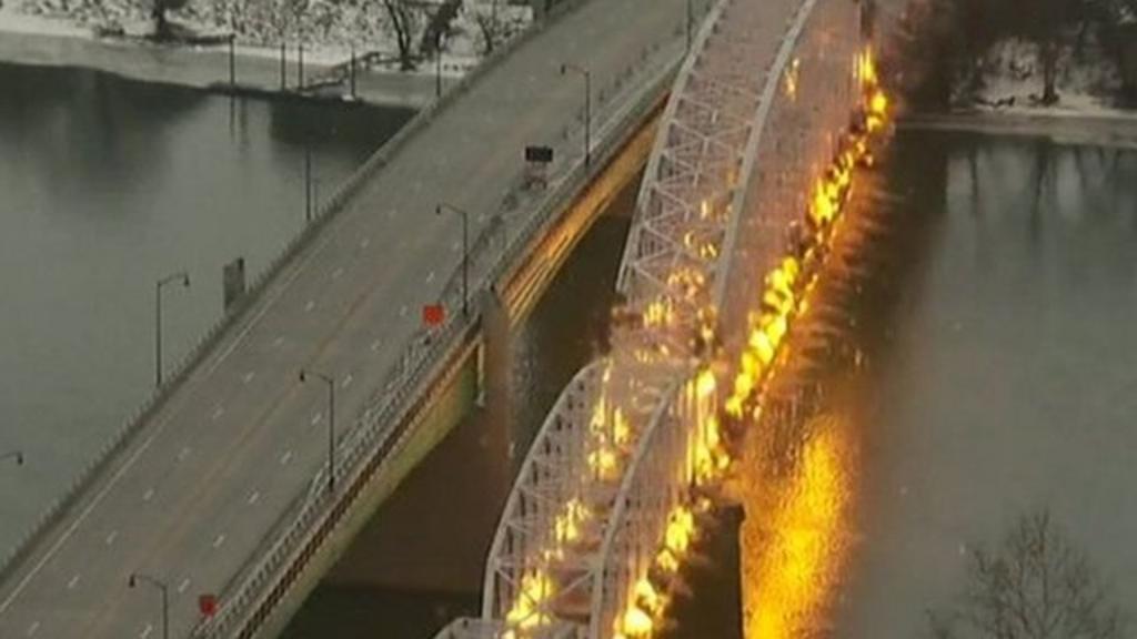 A 107-year-old bridge in Pennsylvania, USA, has been destroyed by a controlled implosion.