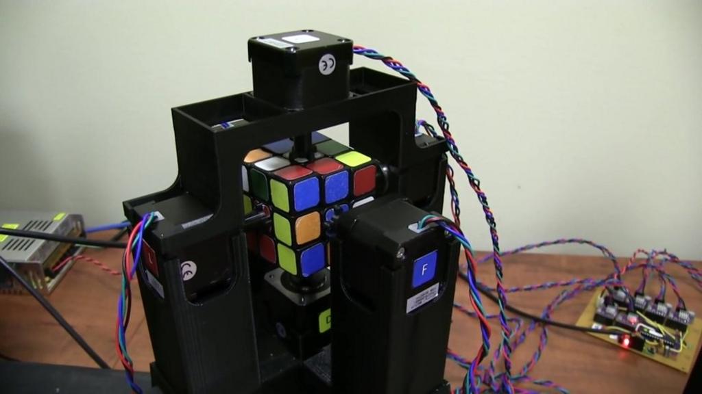 The fastest time for a human to solve a Rubik's Cube is 4.9 seconds, but that's positively slow compared to this robot, which can do it in a 1.019 seconds.