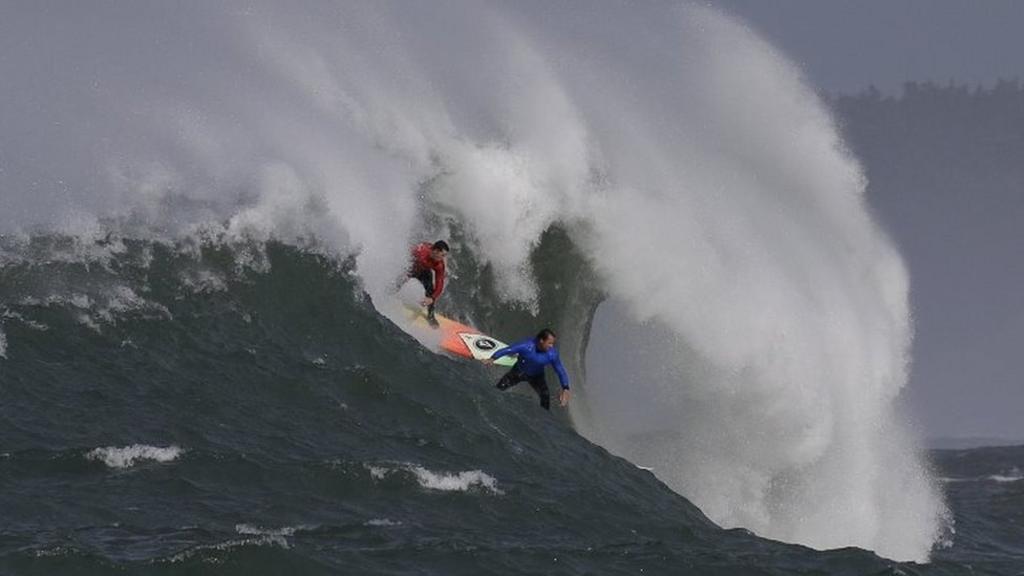 Surfers have been riding some massive waves at Half Moon Bay in northern California in America.
