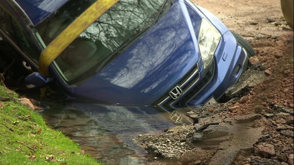 The car was winched out of the hole so that engineers could start working on repairing the pipe.
