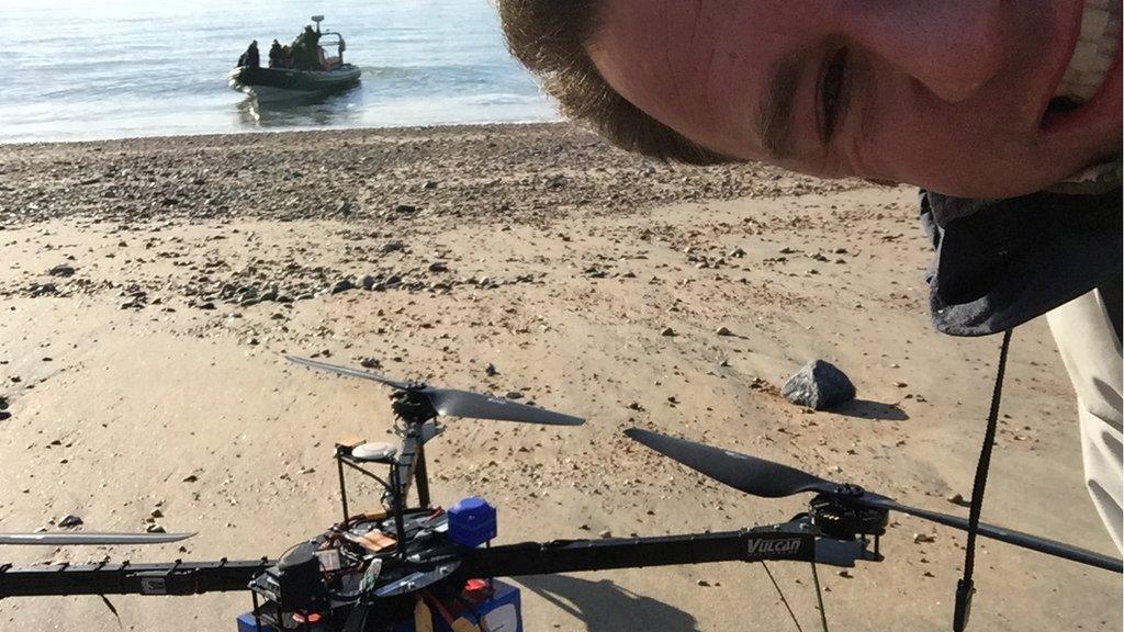 The team, led by Richard Gill, started on a beach in Northern France, where they set the drone off on its 35 kilometre flight back to the UK.