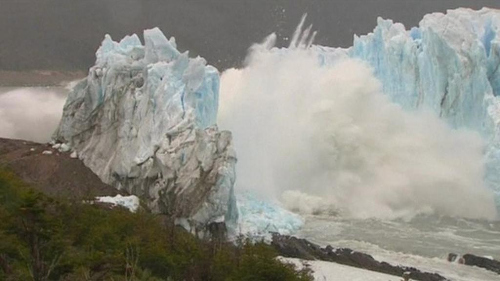 Dramatic footage captured large pieces of ice breaking away and falling into the river below on the site in the City of El Calafate, in the Santa Cruz Province.