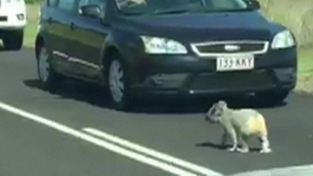 Koala stops traffic after taking a stroll