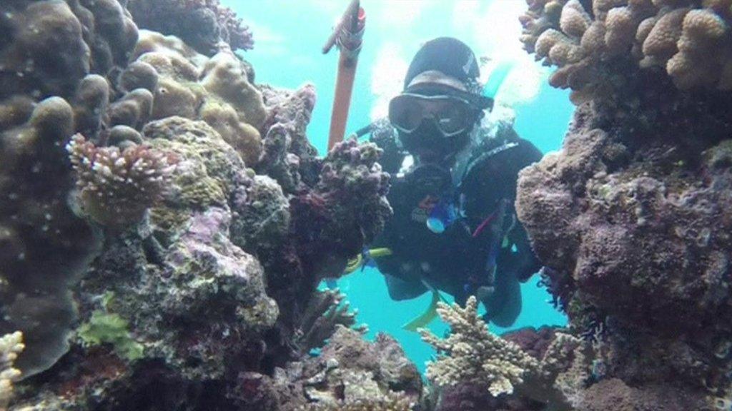 But the reef is under threat from a type of starfish that eats the coral which makes up the giant eco-system. It is known as the 'Crown of Thorns' starfish.