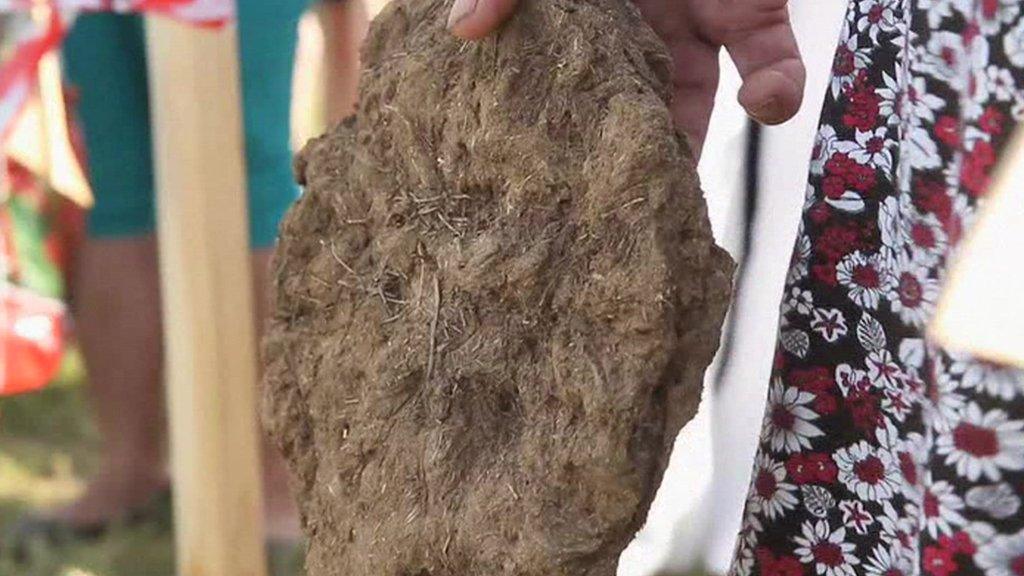 People in the village of Krylovo in Russia celebrated their national day with a cow dung slinging competition.