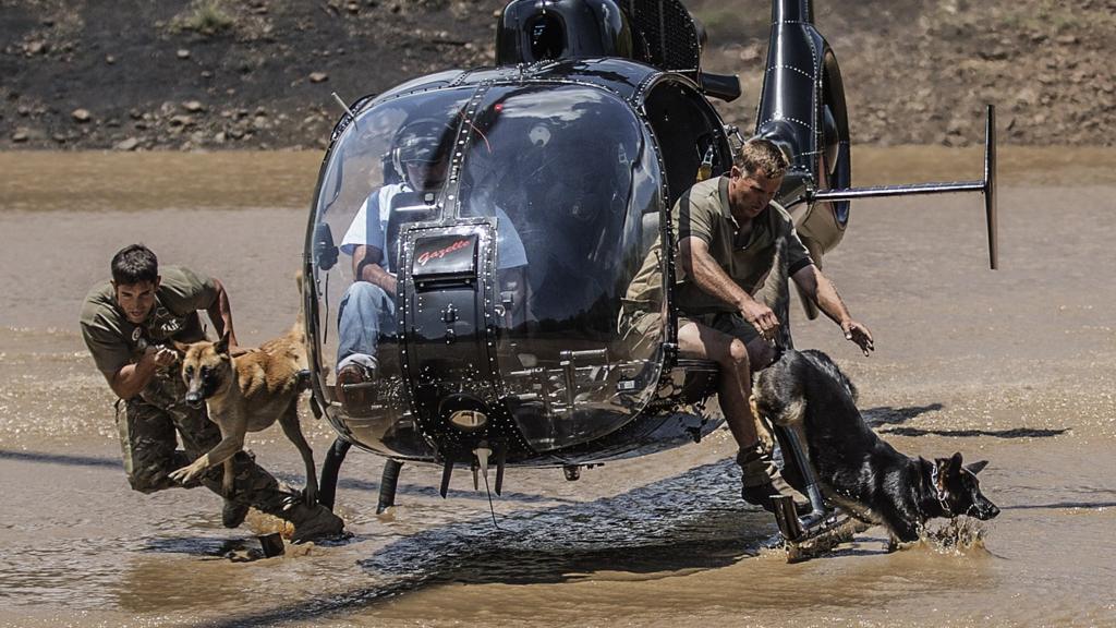 Conservationists are fighting back using specially trained dogs. They are deployed with their handlers by helicopter, and if the poachers are still in the area they can be immediately stopped.