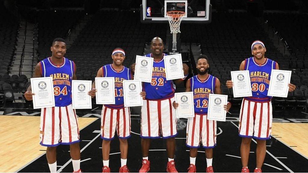 Buckets Blakes from the US basketball team the Harlem Globetrotters celebrated World Trick Shot Day in style.