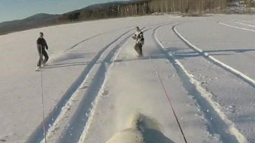 Snowboarding can be slow work without steep hills to race down, but some thrill-seekers in Russia have found a way around the problem - use a horse!