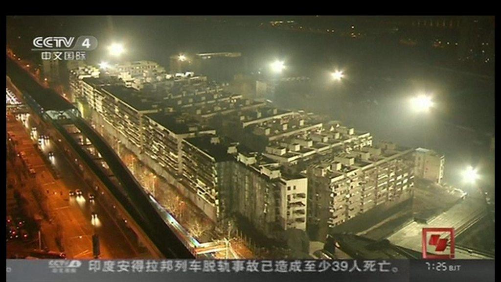 19 blocks of flats demolished in 10 seconds in China.