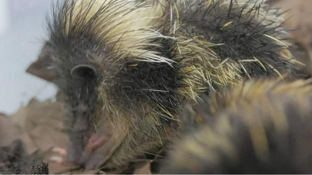 This may look like a cross between a mouse and a hedgehog, but it's actually a lowland streaked tenrec.