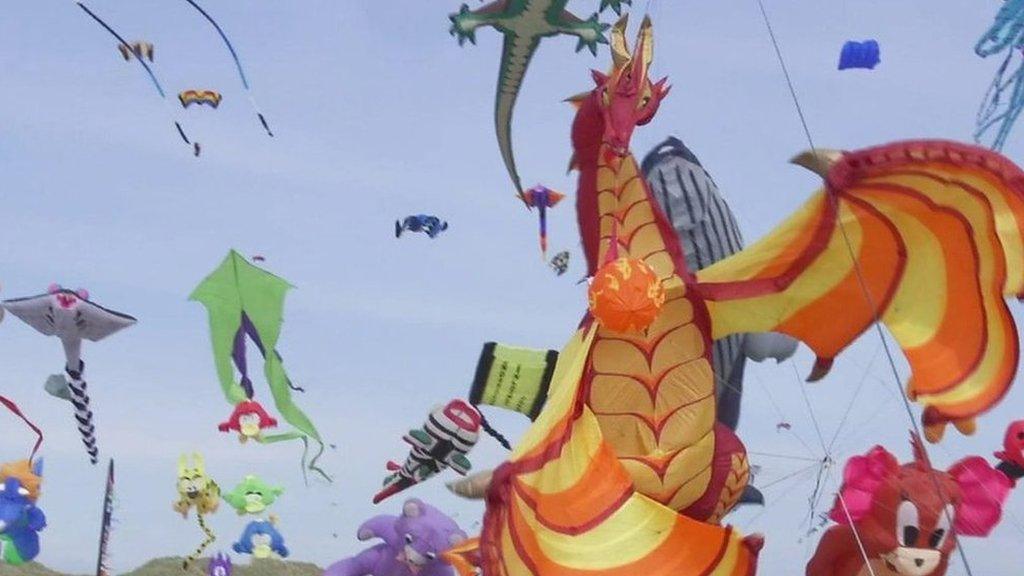 People on the island of Fanoe, off the south west coast of Denmark, are getting to enjoy the sight of thousands of kites taking to the skies.