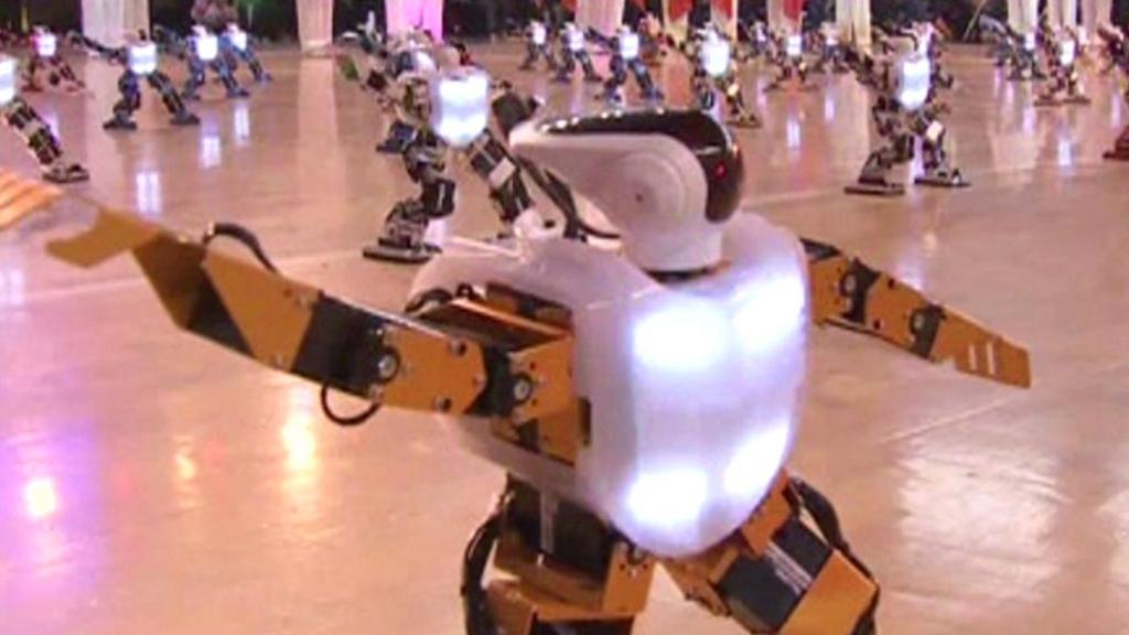 A total of 300 robots, together with martial arts masters, took part in the kung fu display.