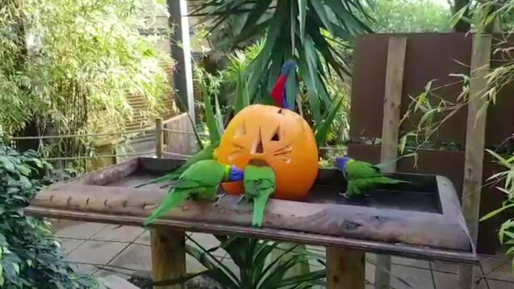 Zoo keepers have been giving them leftover Halloween pumpkins to play with and eat.