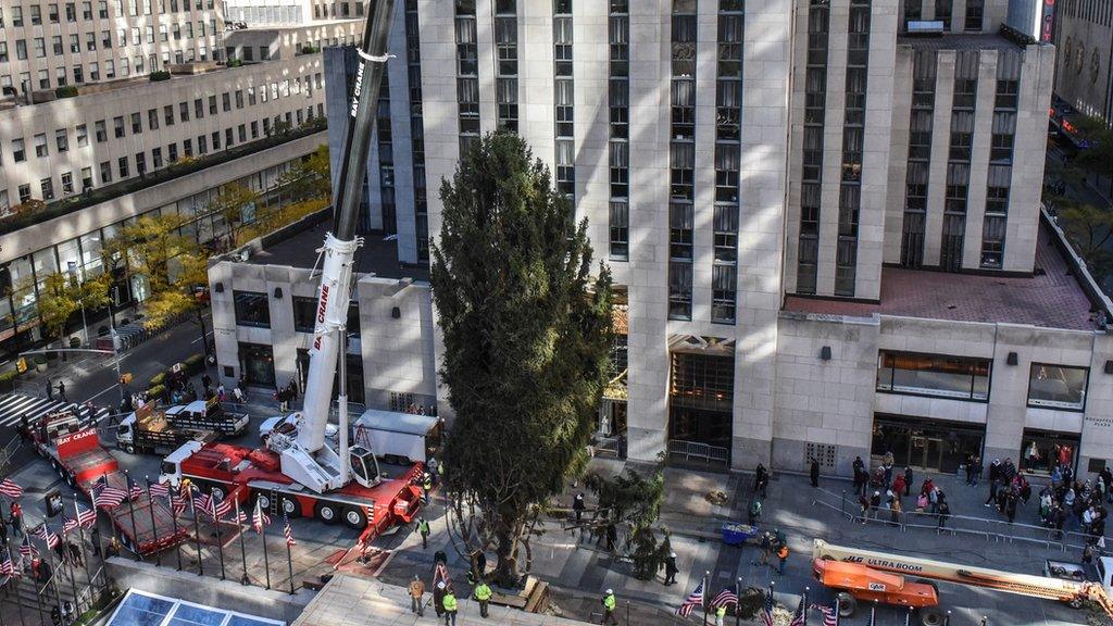 New York's famous Christmas tree has arrived and been put in place at the Rockefeller Center.