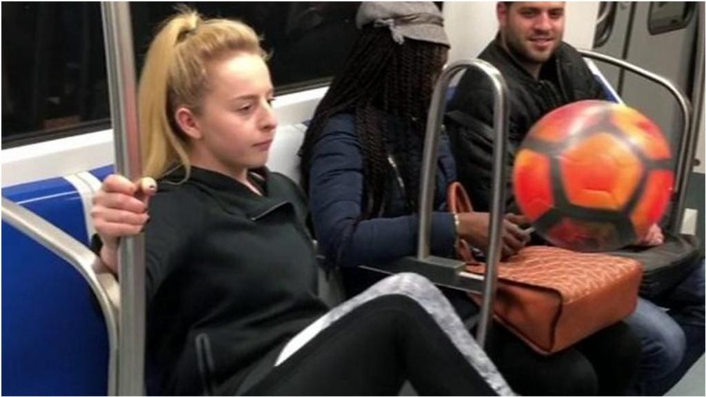 Liv Cooke shocked fellow passengers when she started performing some unbelievable footy tricks and flicks.