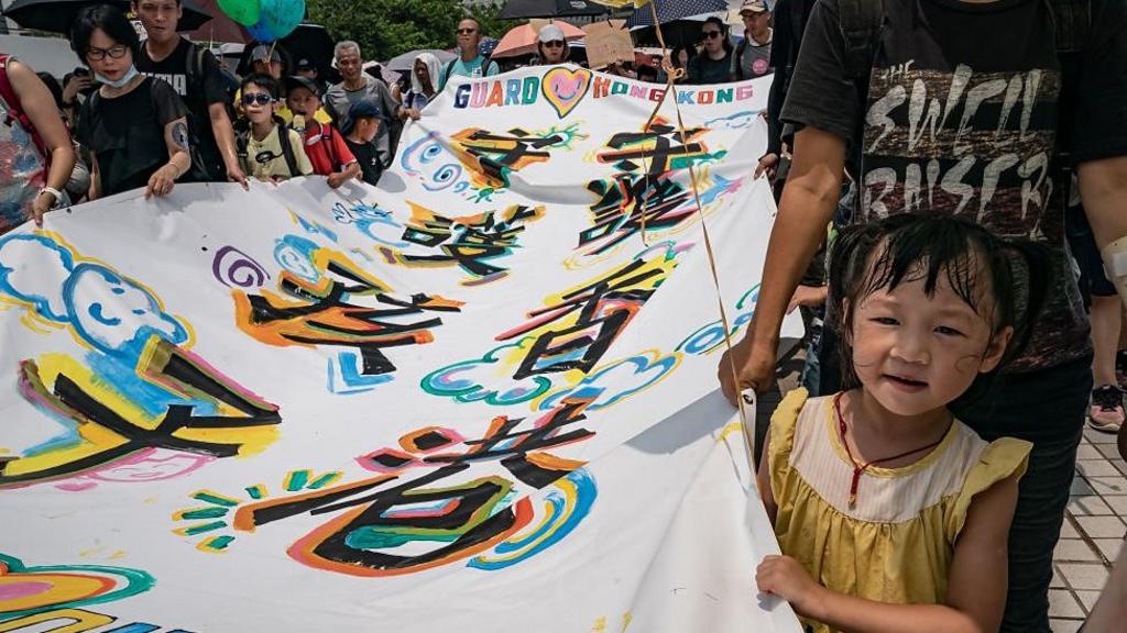 Many of the protests have been violent but on the tenth weekend, families held a peaceful march calling for more freedom.