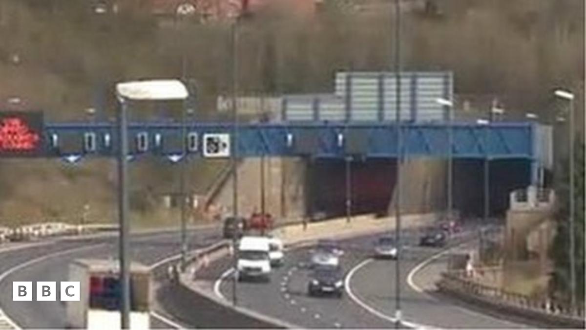 Yn ôl adroddiadau mae'r ddamwain yn y twnel ac fe fydd y draffordd ar gau am rai oriau eto.
