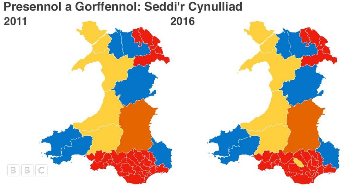 Mae'r ddau fap isod yn dangos nifer y seddi etholaethol y llwyddodd y pleidiau i'w cipio y tro hwn. Nid yw'r mapiau'n cynnwys y seddi rhanbarthol.