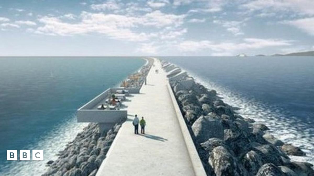 Byddai'r cynllun yn defnyddio 16 o dyrbinau ar hyd morglawdd newydd