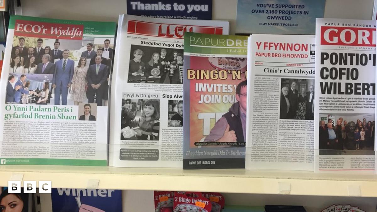 Papurau bro ar werth mewn siop yng Nghaernarfon