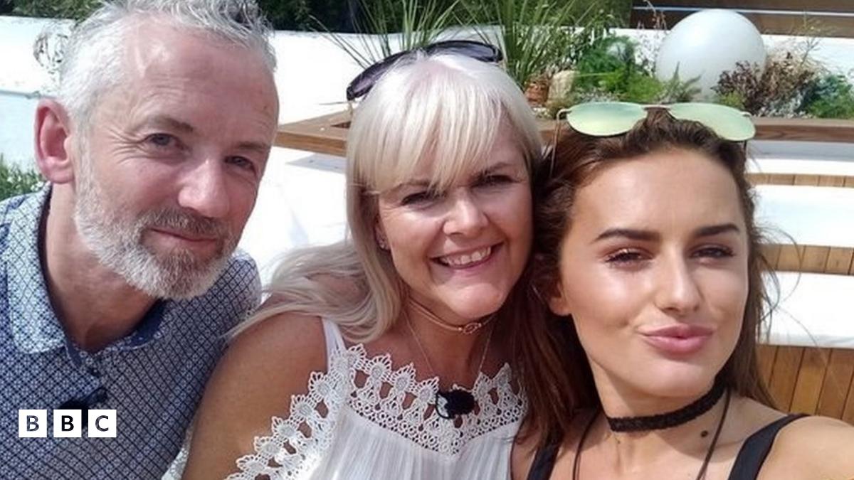 Amber gyda'i rhieni a ddaeth i'w gweld yn y fila
