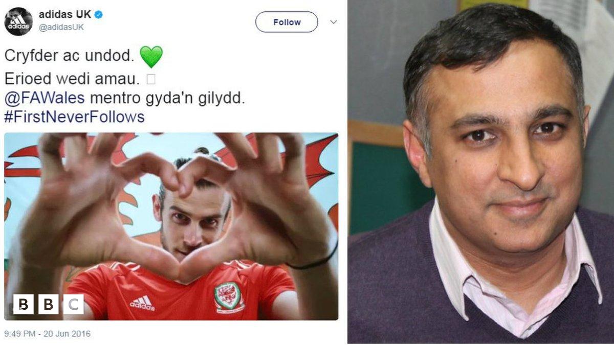 "Wedi i'r neges Gymraeg gael ei hanfon o gyfrif Twitter Adidas, yn fuan ar ôl y chwiban olaf, fe gafodd hi ei rhannu yn gyflym ac fe gyrhaeddodd yr iaith Gymraeg i bob cwr o'r byd mewn byr amser," meddai.