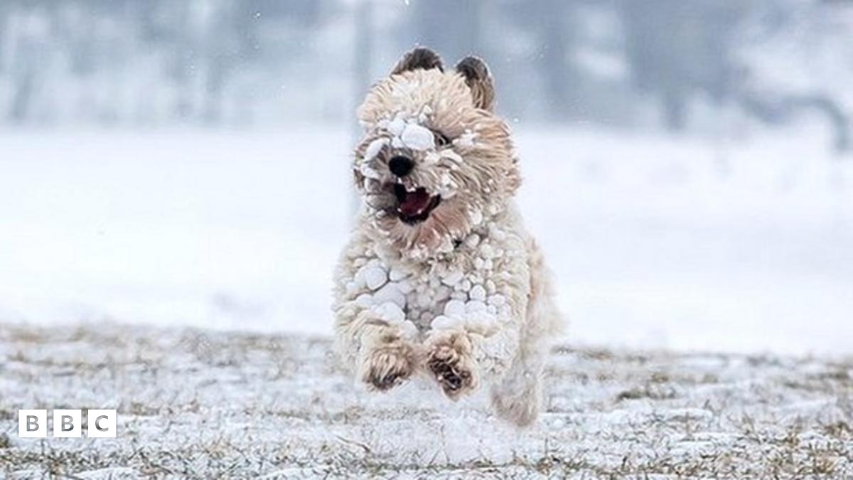 "Pah, pwy sydd eisiau llun neis arall o'r plant yn yr eira pan allwch chi gael fi yn y llun yn lle?" Mini'r pwdl yn dwyn y sylw i gyd yng Ngwalchmai, Ynys Môn