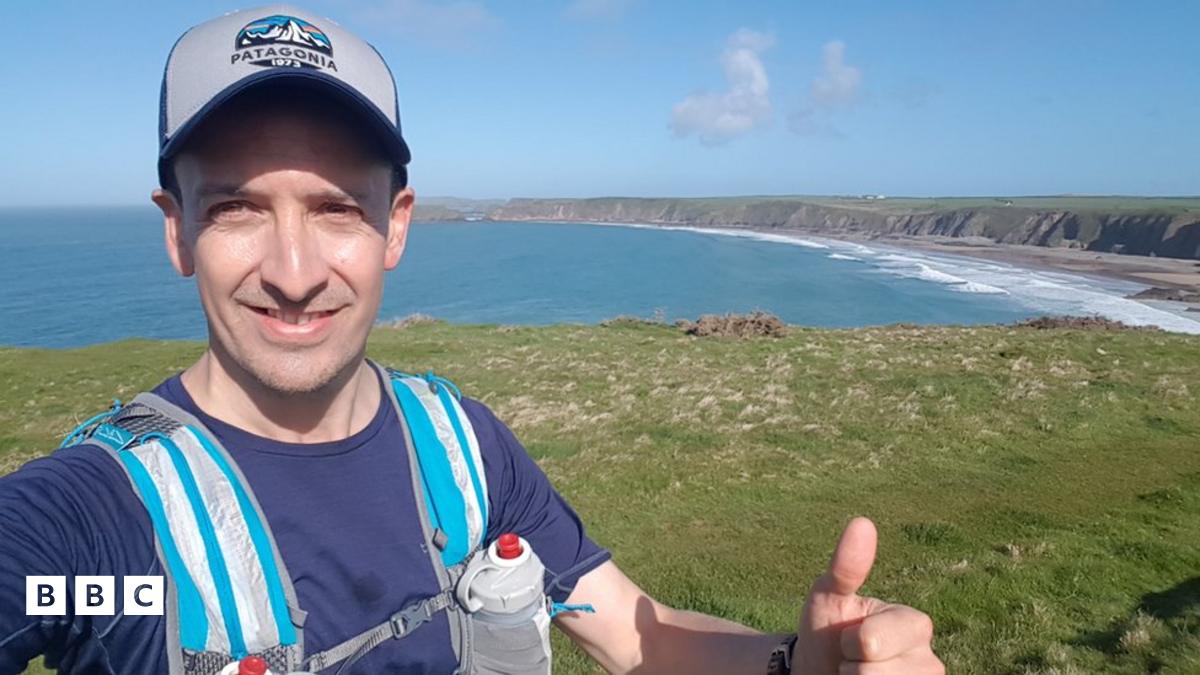Ychydig filltiroedd i mewn i'r ras ac yn mwynhau arfordir Penfro yn barod.