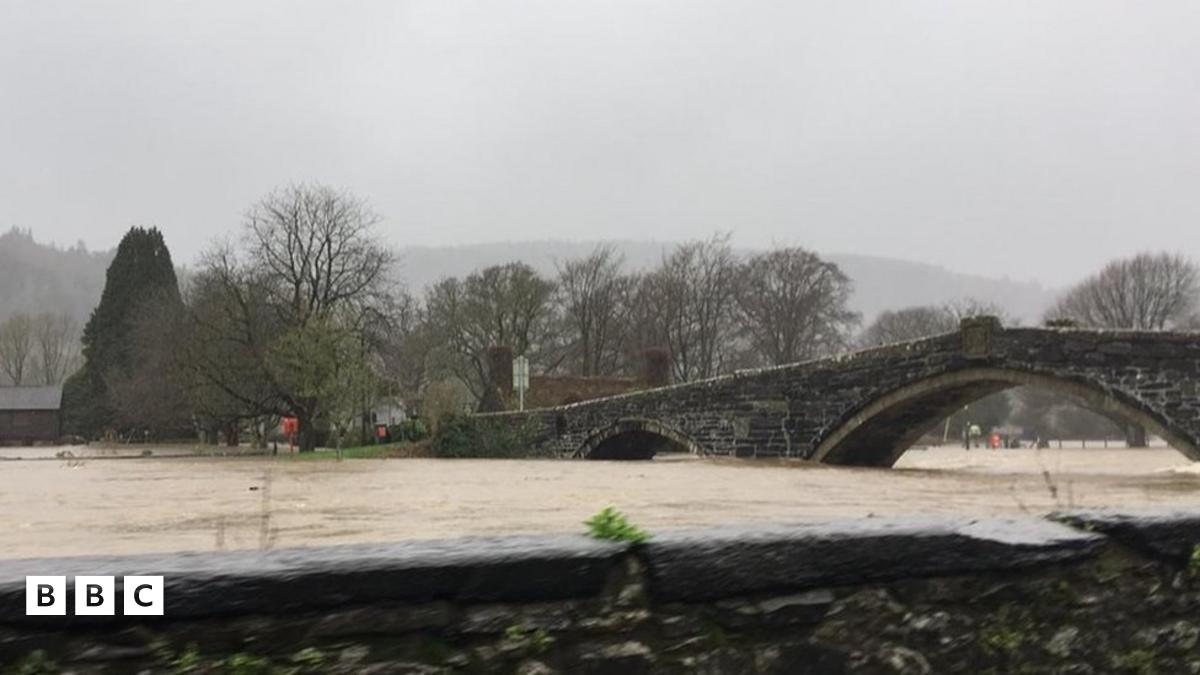 "Afon Conwy ar ei lefel uchaf ar gofnod", yn ôl llefarydd ar ran Cyfoeth Naturiol Cymru