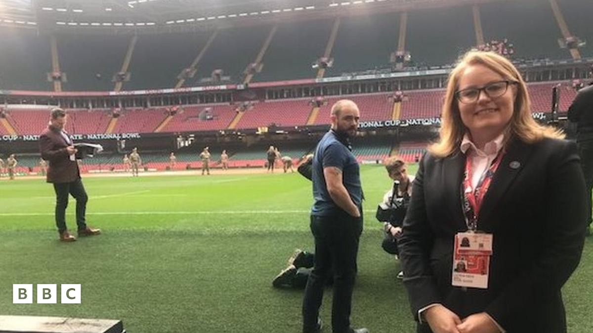 Mae Catrin Rees yn gweithio fel tywysydd rhan amser yn Stadiwm Principality ers tair blynedd - profiad y mae hi'n ei ddisgrifio fel un "hynod o werthfawr".