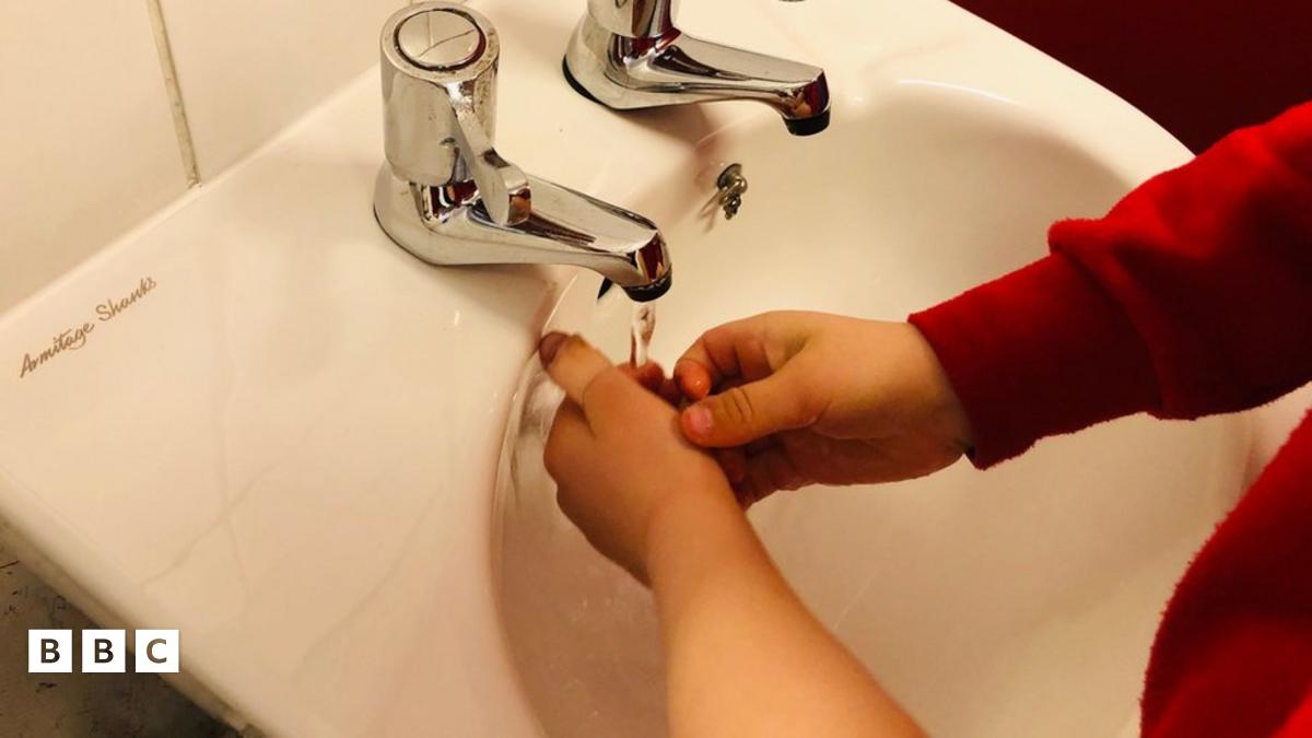 Plentyn yn golchi dwylo yn yr ysgol