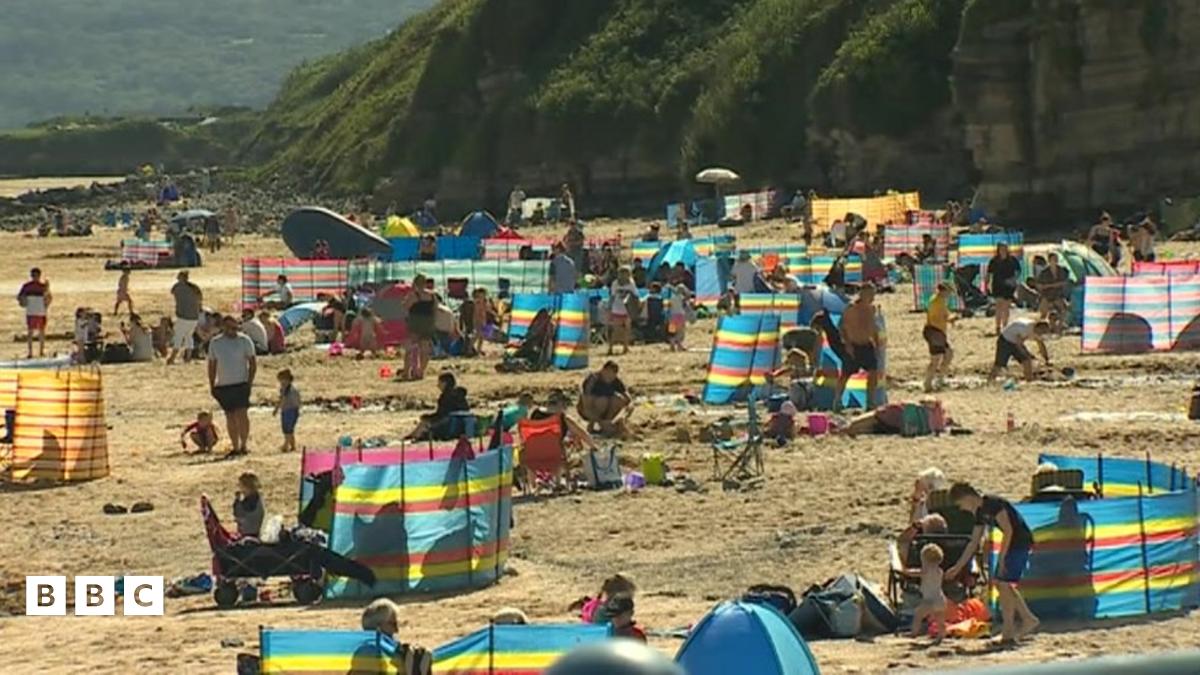Roedd y traethau ger Benllech ar Ynys Môn yn brysur ddydd Sadwrn