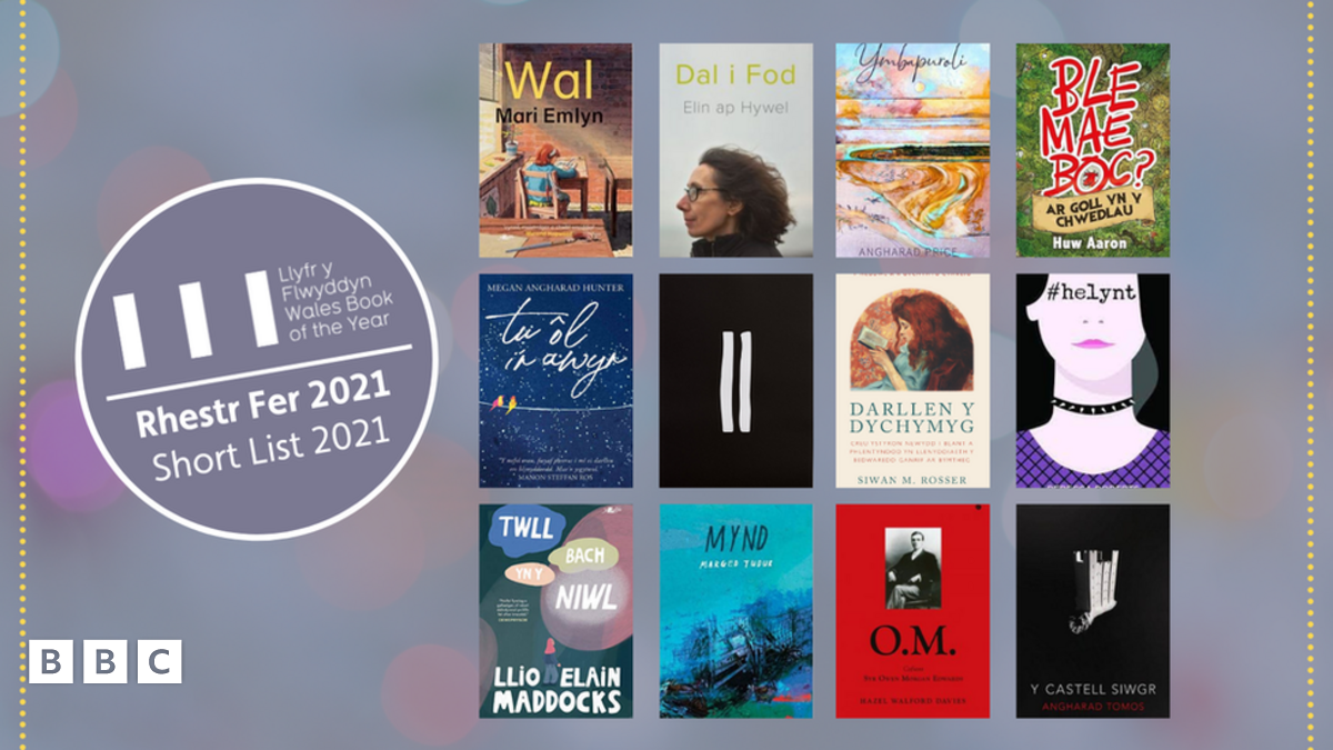 Cafodd enwau'r 12 llyfr Cymraeg eu datgelu am y tro cyntaf ar raglen Stiwdio BBC Radio Cymru nos Lun.