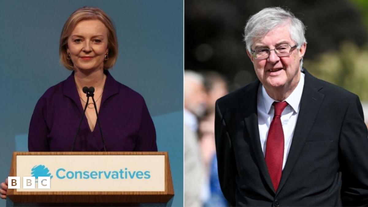 Dywedodd Mark Drakeford (dde) ei fod yn edrych ymlaen at "berthynas bositif" gyda Liz Truss a'i llywodraeth newydd