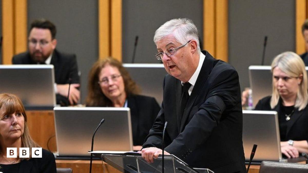 Araith Mark Drakeford yn y siambrFfynhonnell y llun, Senedd